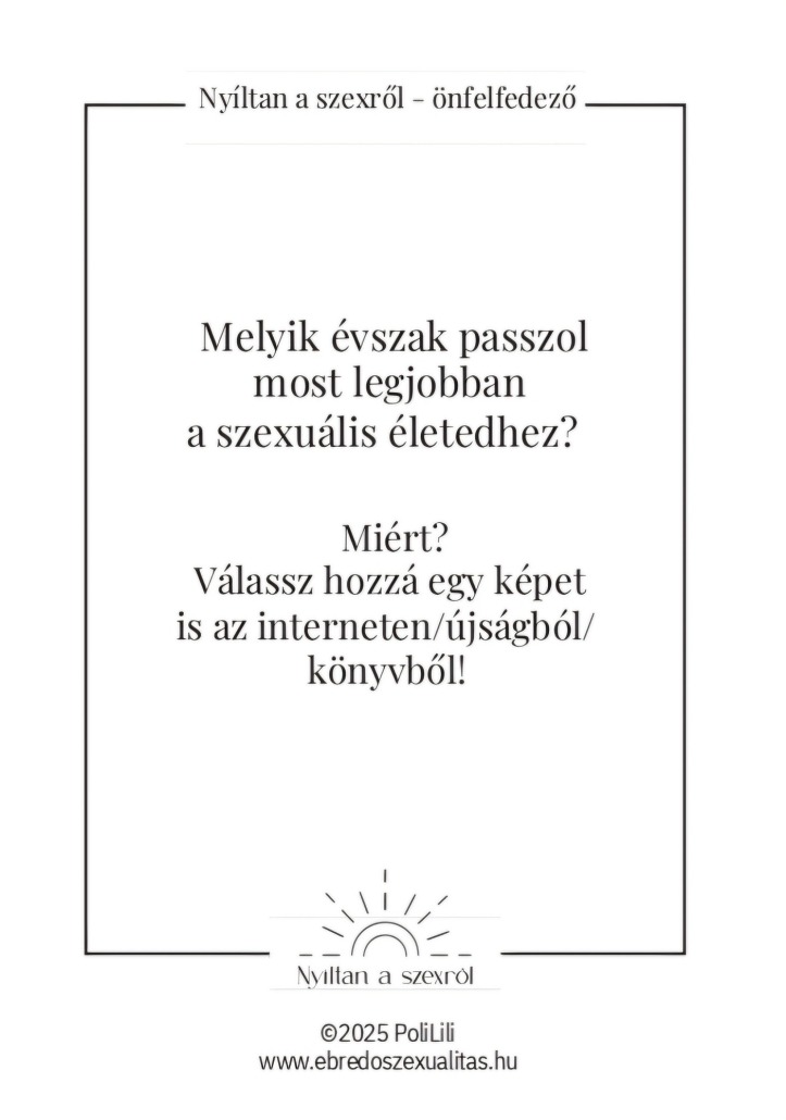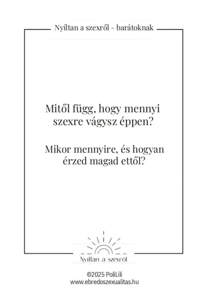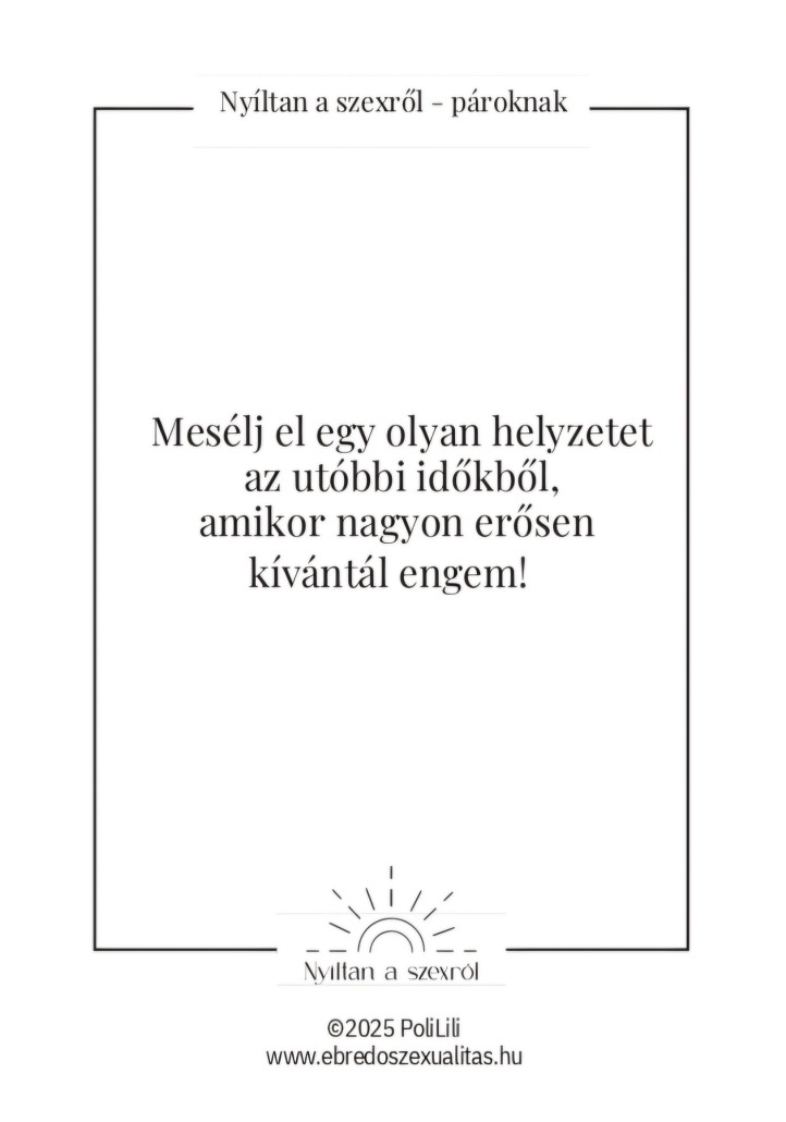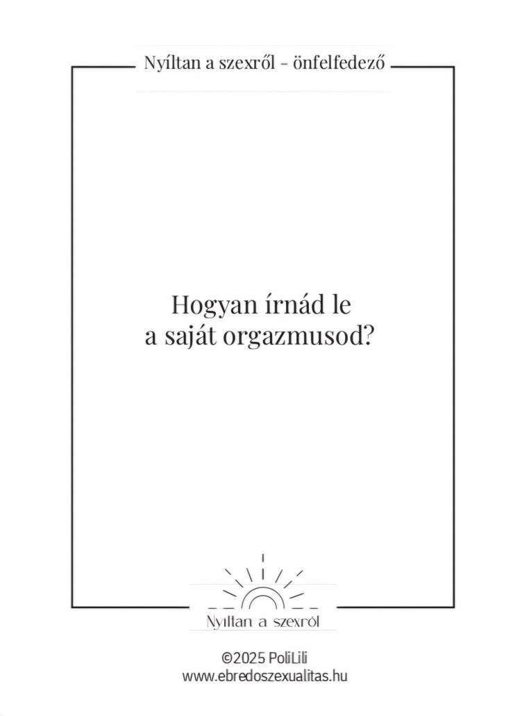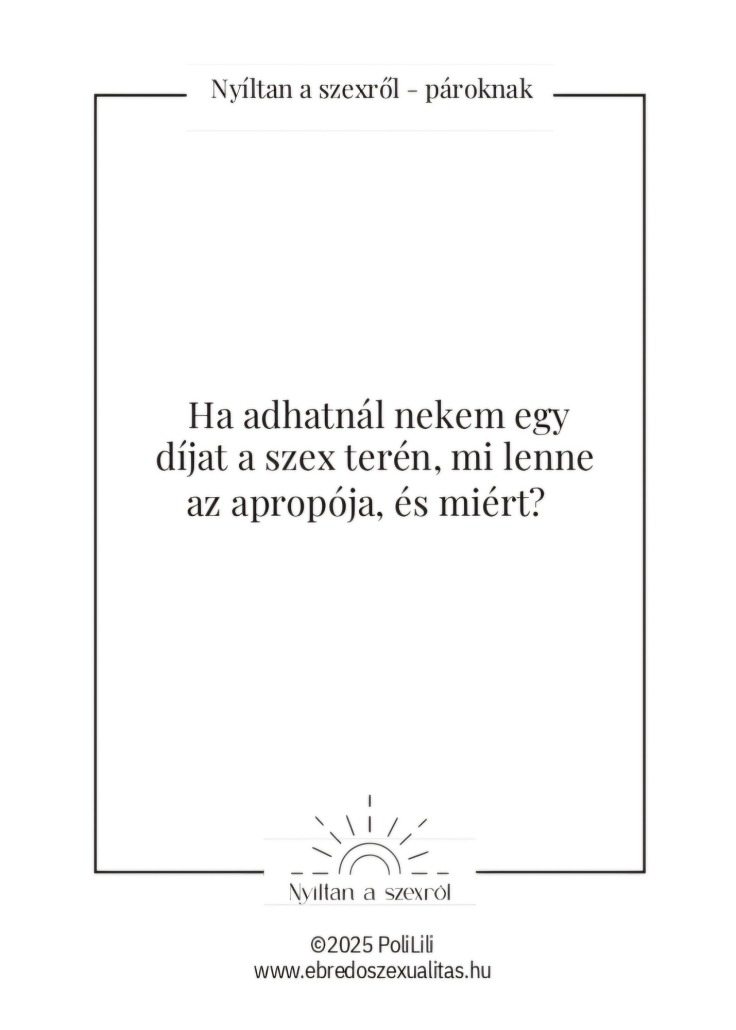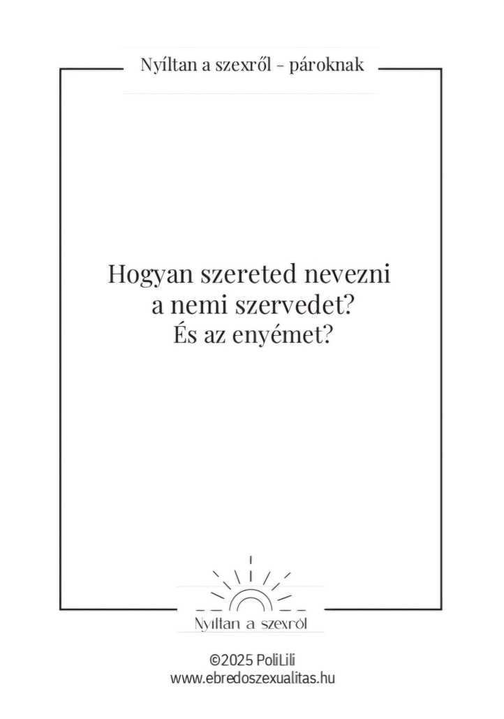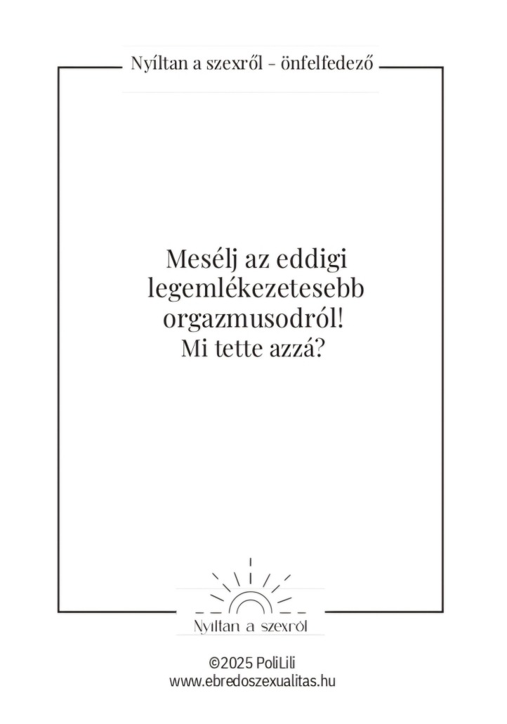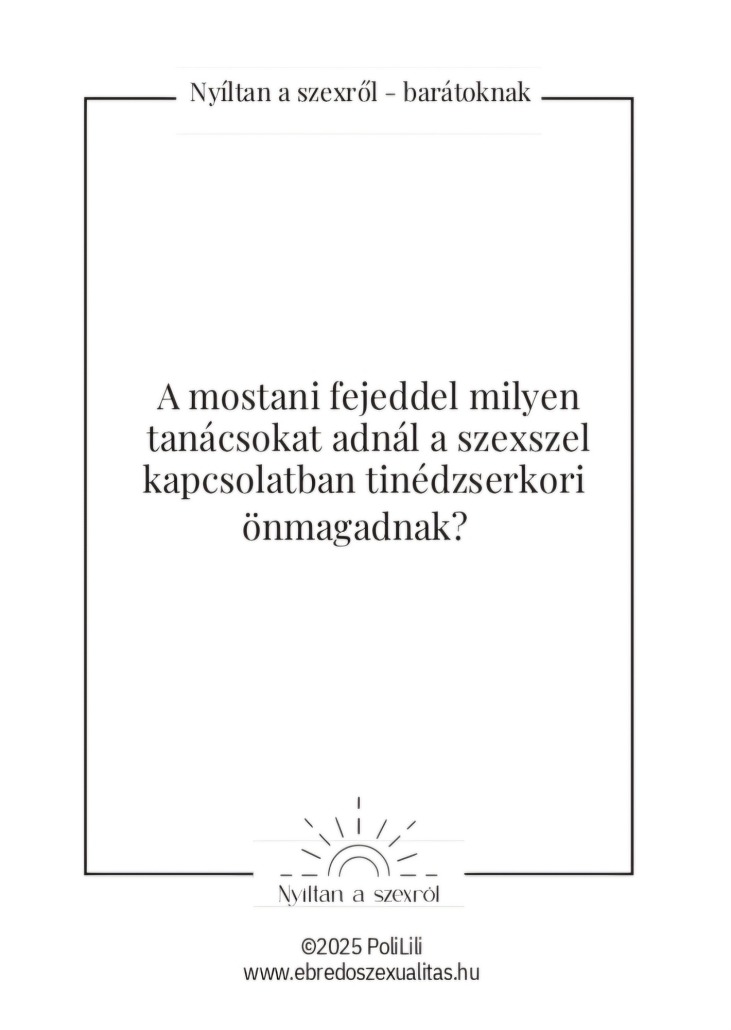 - 1 doboz Nyíltan a szexről – önfelfedező beszélgetőkártya