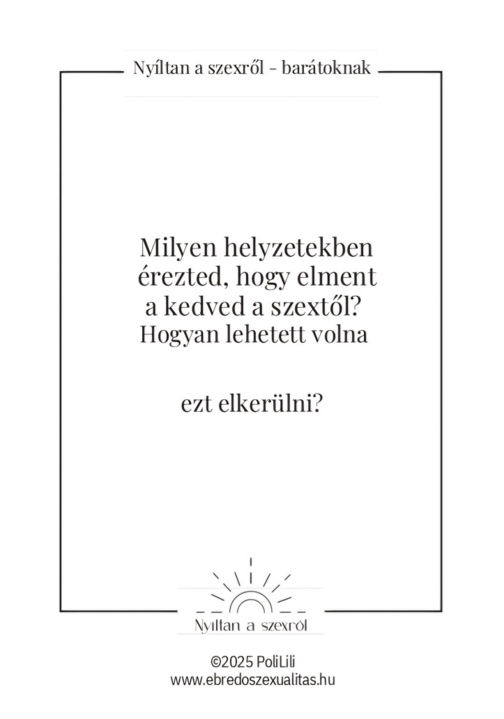 További kérdéseid vannak? Tedd fel nekem egy „Online előadások a szexről” tárgyú e-mailben a info@ebredoszexualitas.hu címen.
